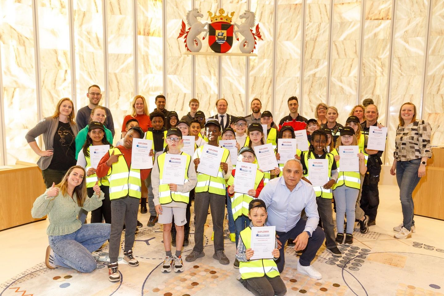 Donderdag 20 maart kregen 24 kinderen in Almere een diploma uitgereikt voor de opleiding die ze hebben gevolgd als politiekids. In de Raadzaal van het stadhuis kregen zij hun diploma overhandigd uit handen van burgemeester Hein van der Loo en kinderburgemeesters van Almere Harkiran en Ekam.