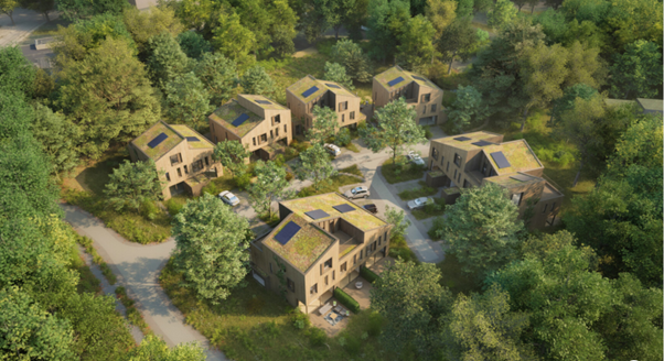 Middels een tender is voor de projectmatige woningen van 3 hofjes een ontwikkelaar gekozen. De tender is gewonnen door ontwikkelaar Heutink samen met Mix Architecten en MAAK Space. In het Muiderbos komen 48 biobased grondgebonden woningen met een sterke focus op duurzaamheid en landschappelijke inpassing. Verwacht wordt dat in de loop van 2026 gestart wordt met de bouw van Duinhout. Lees meer informatie over de woningen.