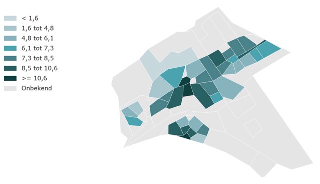 Figuur 5 is gemaakt via de website Zicht op Ondermijning. Kies de gemeente Almere en het thema ‘nieuwe aanwas’ en ‘toon wijken’ dan wordt de kaart van figuur 5 gegenereerd.